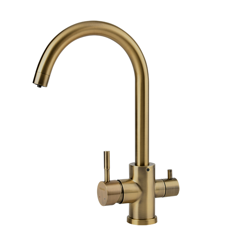 Смеситель для кухни с возможностью подключения питьевой воды.Выполнен в цвете "бронза". Имеет выделенный канал под питьевую воду. В комплекте гибкая подводка 50 см. Смеситель выполнен из нержавеющей стали 304 марки. Фирменный картридж Osgard, Аэратор VATTENFALL
