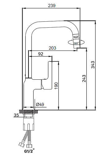Оснащение Смеситель 1 шт., гибкая подводка 1 компл., паспорт изделия 1 шт.,  крепеж 1 компл