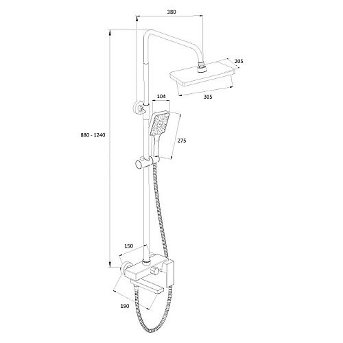 Телескопическая стойка для душа. При использовании допускается регулировка от 875 до 1255 мм. Излив-дивертор 185 мм. Интегрированный аэратор имеет угол наклона 5 градусов. Изделие оснащено двумя керамическими диверторами переключения потока воды. Картридж 35 мм. Материал изделия - латунь. Цвет хром.