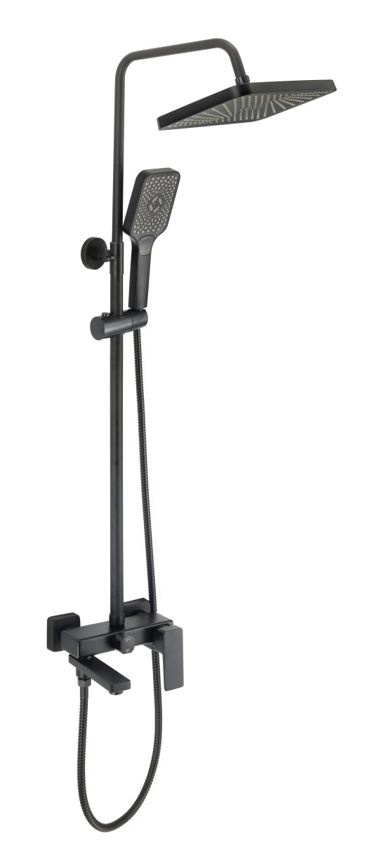 Телескопическая стойка для душа. При использовании допускается регулировка от 875 до 1255 мм. Излив-дивертор 185 мм. Интегрированный аэратор имеет угол наклона 5 градусов. Изделие оснащено двумя керамическими диверторами переключения потока воды. Картридж 35 мм. Материал изделия - латунь. Цвет черный матовый.