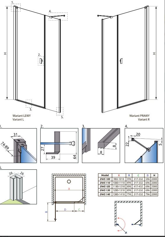 Radaway 10028110-99-01R Дверь для душа, распашная