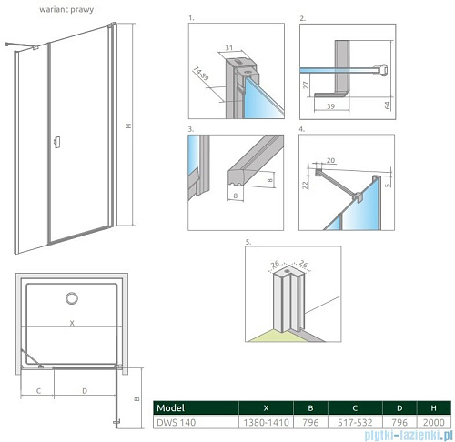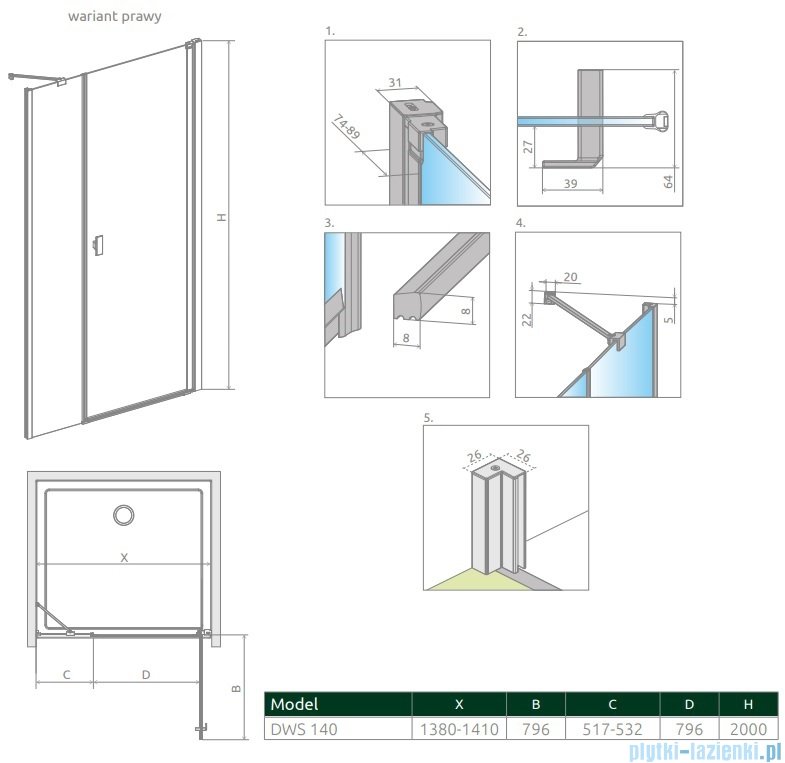 Radaway 10028140-01-01L Дверь для душа, распашная