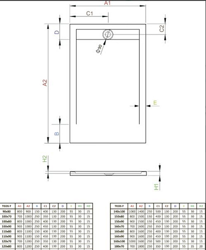 Тип товара Душевой поддон