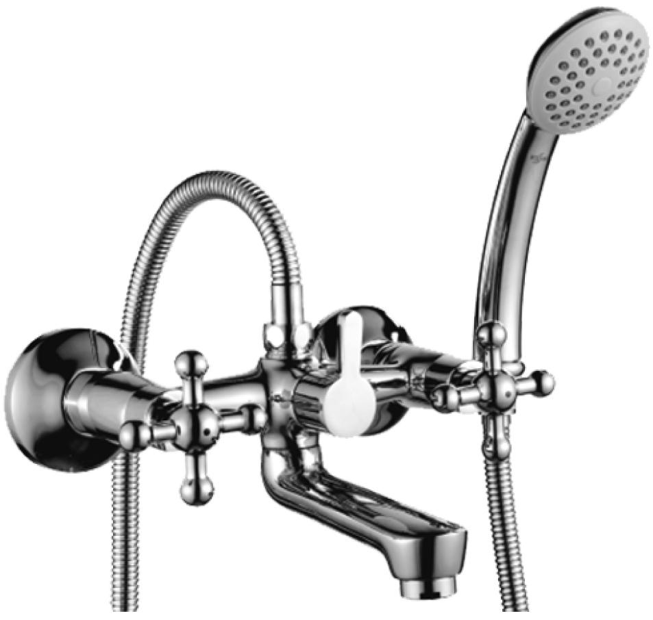Двуручный смеситель для ванны с душем Rossinka G G02-83 привнесет в интерьер утонченность ретростиля. В основе конструкции лежит рабочий механизм – две керамические вентильные головки Rossinka Silvermix с системой шумопонижения. Фиксированный излив оборудован аэратором с функцией «Анти-Кальций», которая исключает отложение извести и позволяет легко очистить сетку аксессуара от загрязнений. Полноценный душевой набор представляет собой однофункциональную лейку с самоочищающейся душевой насадкой, настенное крепление и длинный шланг с двойной оплеткой. Для вертикального крепления в комплект входит присоединительная группа, включающая эксцентрики с отражателями.