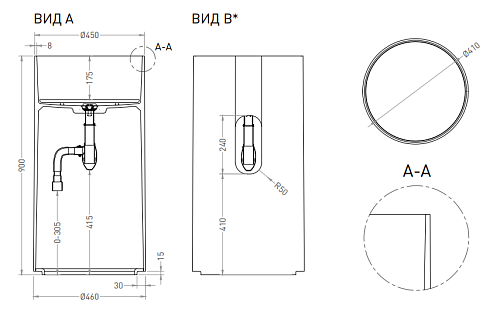 Оснащение Раковина напольная, выпуск для раковины D 503, сифон, декоративная накладка на слив