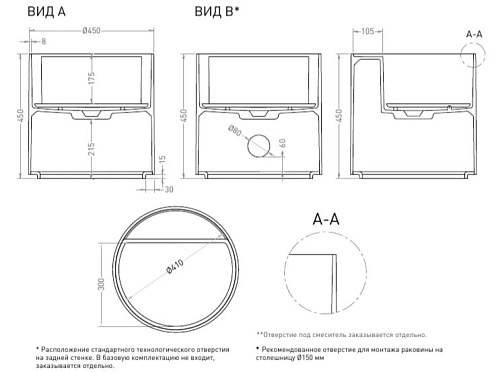 Оснащение Раковина накладная без отверстия под смеситель, декоративная накладка на слив, выпуск для раковины D503