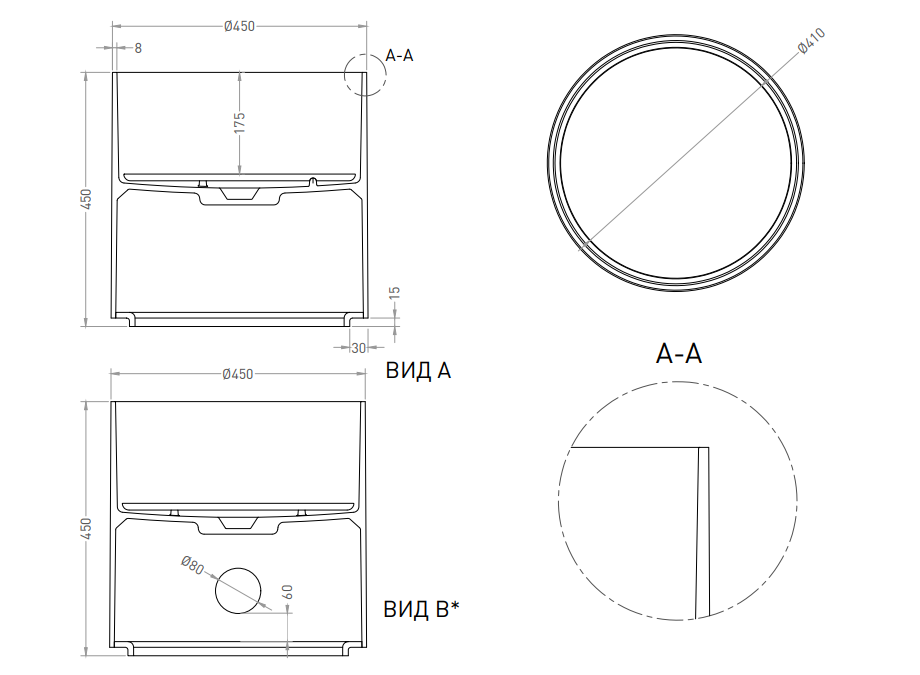 Тип товара Раковина накладная