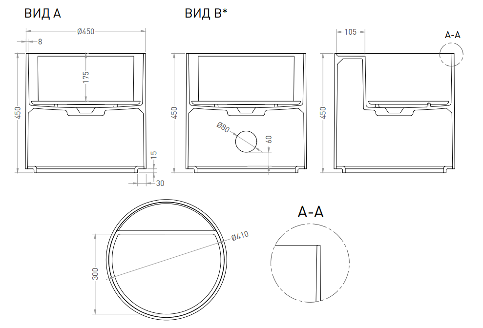 Тип товара Раковина накладная