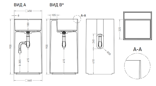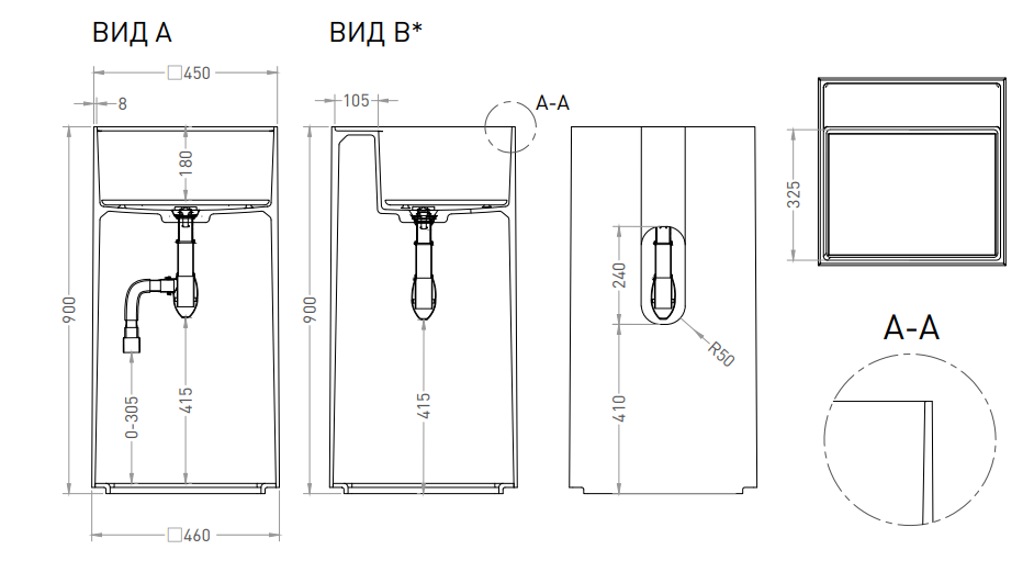 Оснащение Раковина напольная без отверстия под смеситель, выпуск для раковины D 503, сифон, декоративная накладка на слив