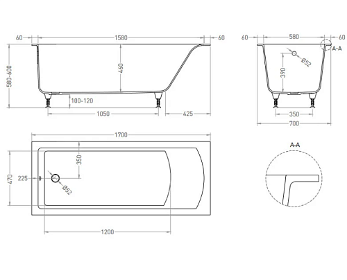 Тип товара Ванна встраиваемая