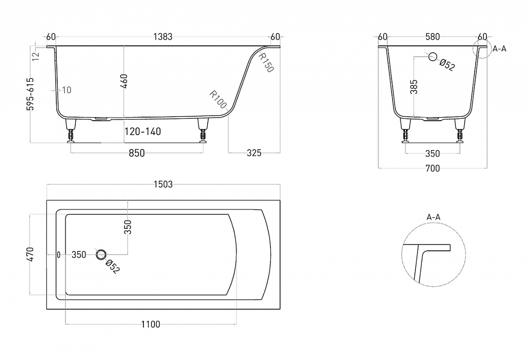Оснащение Встраиваемая ванна, регулируемые ножки