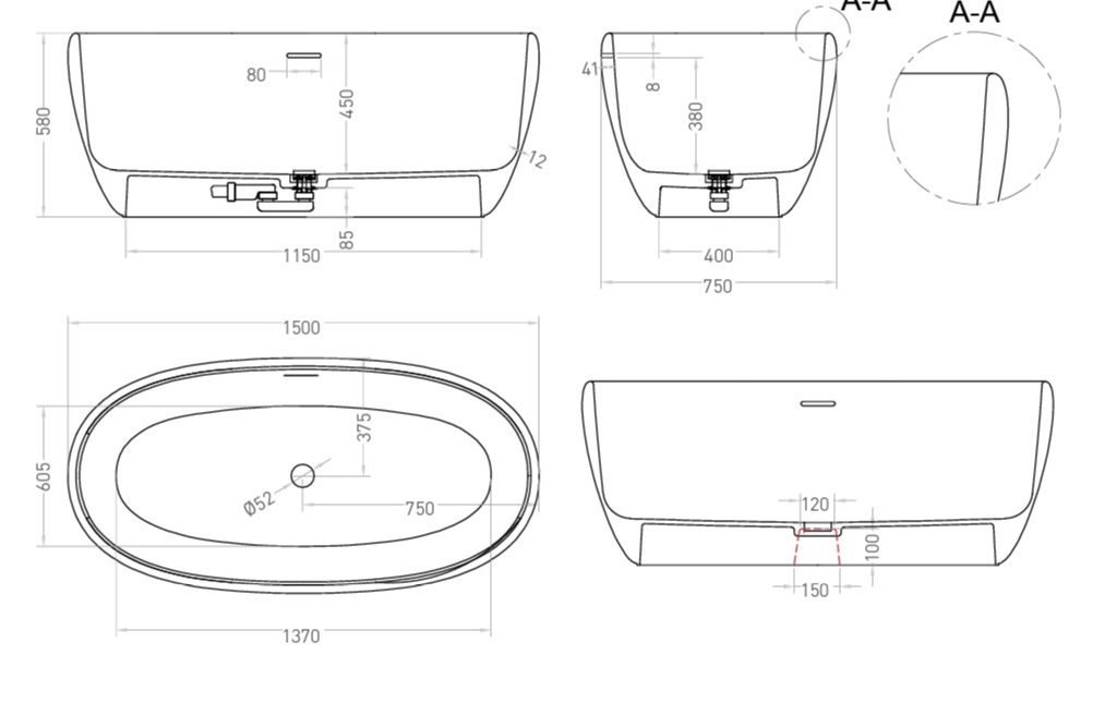 Тип товара Ванна отдельностоящая