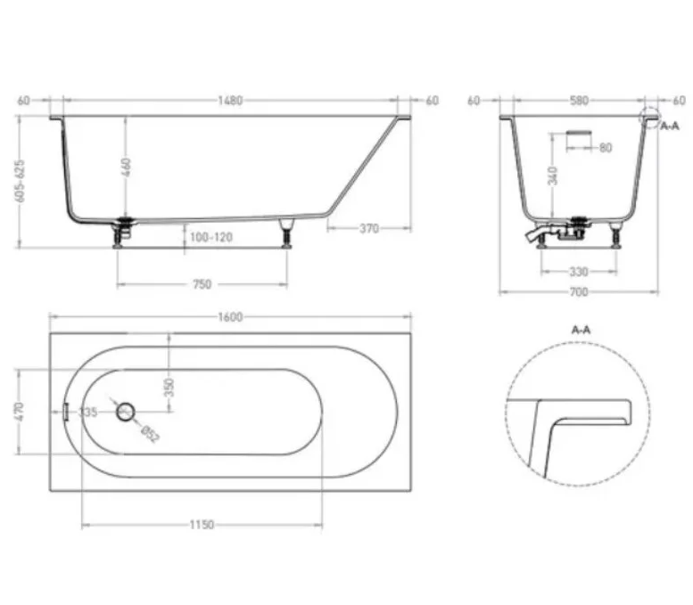 Оснащение ванна, регулируемые ножки до 2 см, интегрированный слив перелив, донный клапан цвет белый