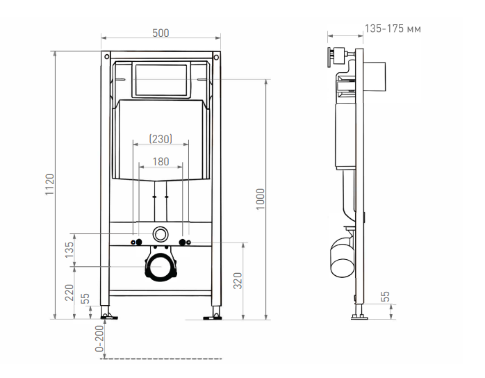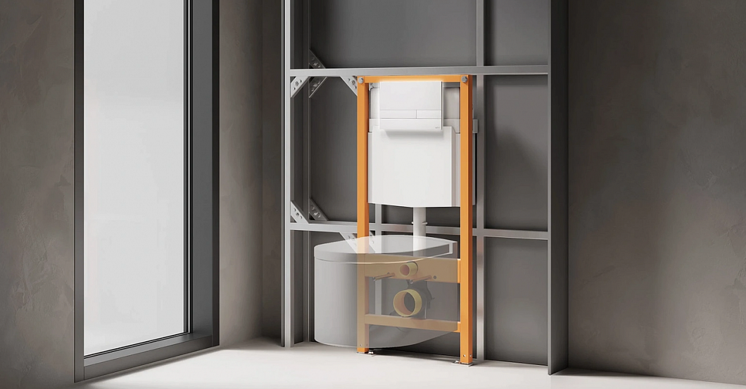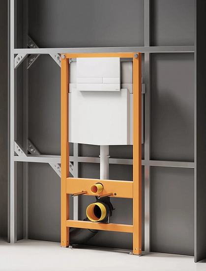 Оснащение Металлическая рама с порошковым покрытием с нижними и верхними крепежными стойками и возможностью регулировки до 200 мм - Пластиковый смывной бачок в сборе с наполнительной и спускной арматурой - Клапан подключения воды 1/2, шаровый кран с верхним или задним креплением - Колено сливное DN 90, переходник PE DN 90/110 - Комплект для подключения унитаза DN 90 для подвесных унитазов - Комплект крепежных элементов - Шумоизоляционная прокладка
