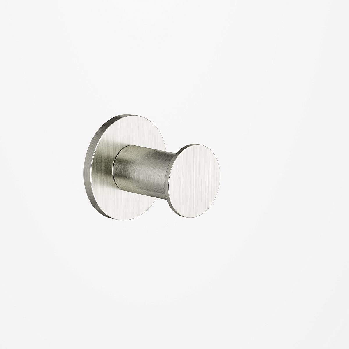 Крючок; Материал - латунь; Форма розетки - круглая; Размер 48x50 мм; Прочное покрытие методом PVD; Крепления в комплекте; Цвет брашированный никель