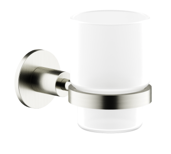 Стакан для зубных щеток подвесной. Материал латунь/стекло; Экстра прочное покрытие PVD; Цвет брашированный никель; Крепления в комплекте