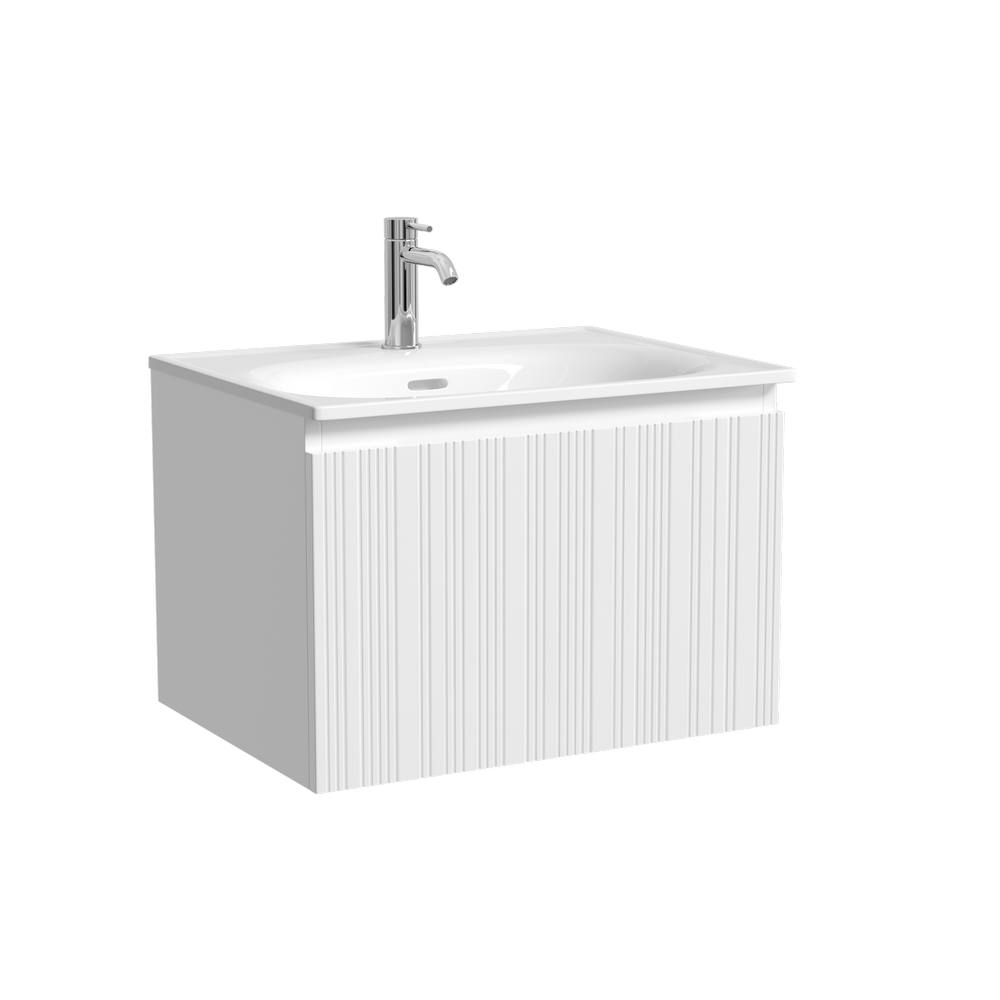 Тумба с одним выдвижным ящиком с доводчиками скрытого монтажа, Выполнена из МДФ с покрытием ПВХ плёнка , комплектующие FIRMAX. Цвет белый матовый