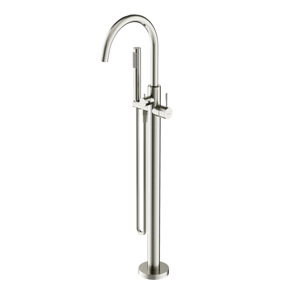 Смеситель для ванны напольного монтажа; Надежный корпус из высококачественной латуни; поворотный излив; Картридж CITEC - обеспечивает точную настройку температуры и плавное управление напором; аэратор Neoperl смягчяет воду и препятствует разбрызгиванию; Встроенный девиатор автоматически переключает поток с душа на излив при закрытии воды; ручной душ выполнен из лутуни; шланг ПВХ с функцией антискручивания, длиной 1,25 м; Экстра прочное покрытие PVD; цвет брашированный никель