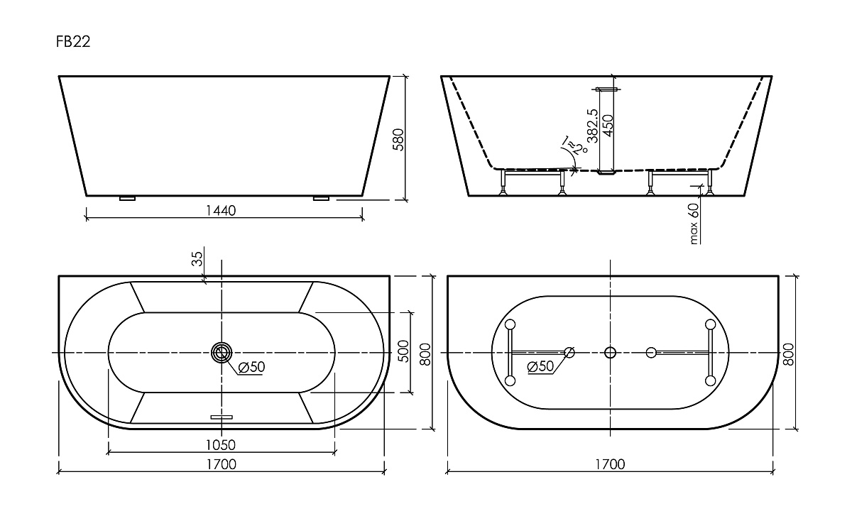 Пристенная установка Ванны изготовлена из 100% литьевого акрилового листа, толщиной 3,5 мм Укрепленное дно - использование высокопрочной плиты делает дно максимально жестким и невероятно прочным Усиленный каркас из нержавеющей стали с регулируемыми ножками Сифон с гидрозатвором - предотвращает проникновение неприятных запахов из канализации Донный клапан "click- clack" - легкое открывание и закрывание нажатием Щелевой слив - перелив, аккуратное технологическое отверстие не требует подбора и установки декоративных накладок и предотвращает переполнение ванны
