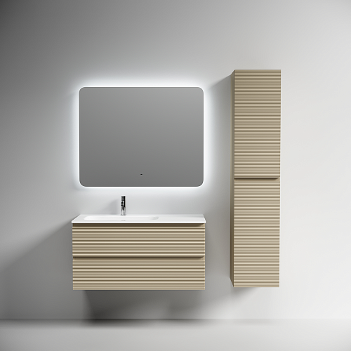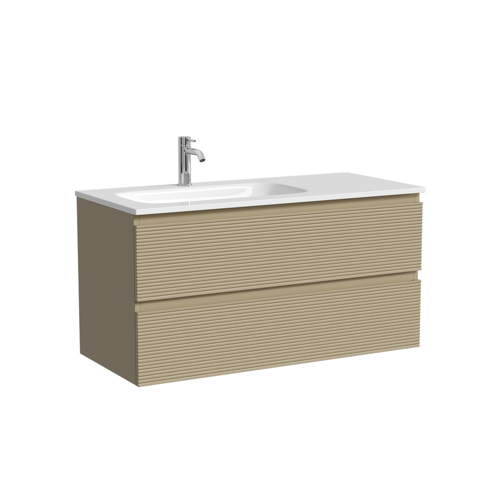 Тумба подвесная с двумя выдвижными ящиками с доводчиками скрытого монтажа Каркас и фасад тумбы выполнен из МДФ, покрытие ПВХ - пленка Размер 995х445х500, левая На изображении тумба Folk представлена с зеркалом RAY, смесителем из коллекции ETNA и раковинами Grace CN7014