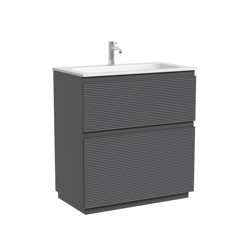 Тумба напольная с двумя выдвижными ящиками с доводчиками скрытого монтажа Каркас и фасад тумбы выполнен из МДФ, покрытие ПВХ - пленка Размер 790х445х850 В комплекте регулируемые ножки для невелирования неровностей пола до 10 мм На изображении тумба Folk Floor представлена с зеркалом RAY, смесителем из коллекции ETNA и раковиной Grace CN7012