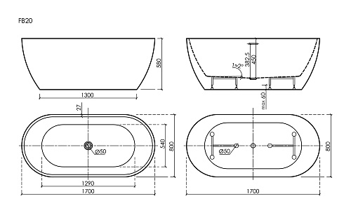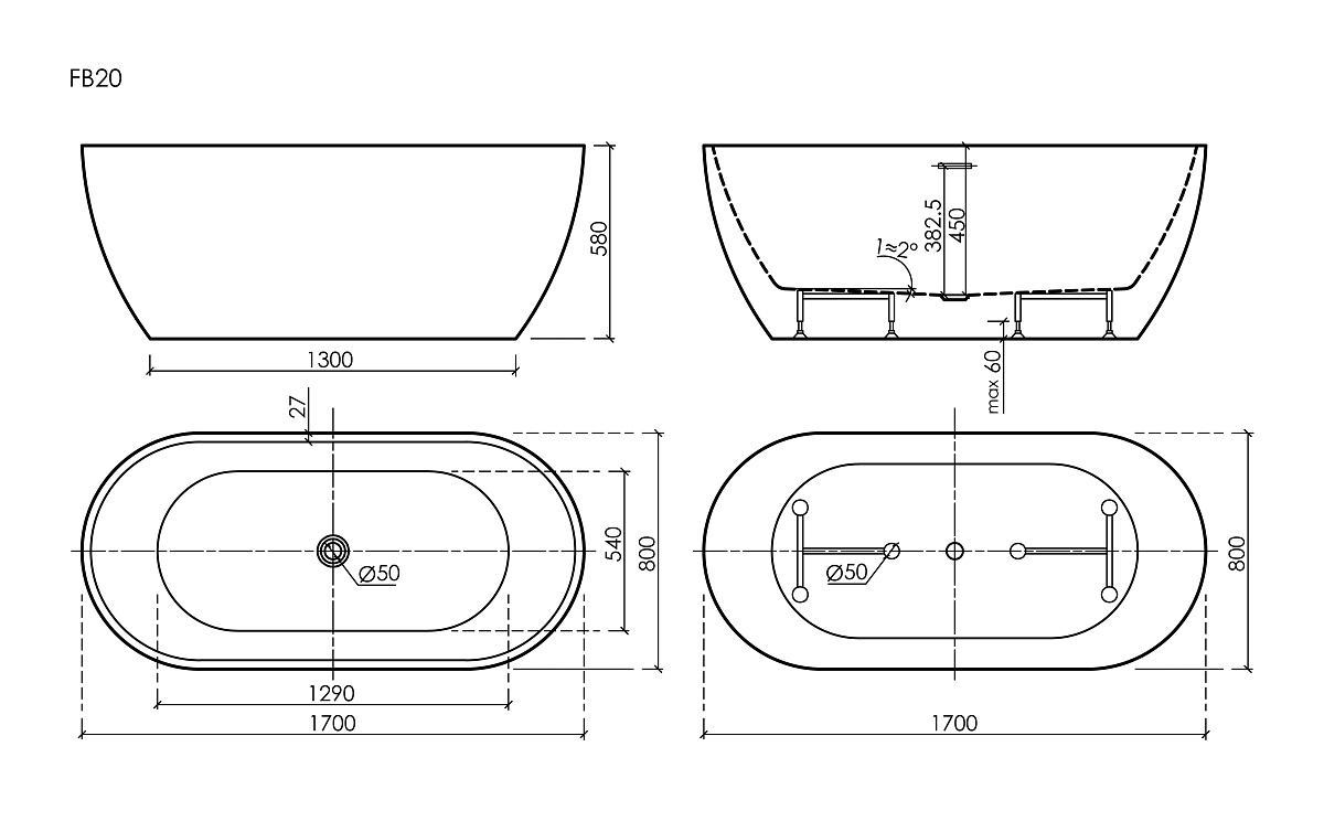 Овальная классическая форма - комфорт и эргономичность Ванны изготовлена из 100% литьевого акрилового листа, толщиной 3,5 мм Укрепленное дно - использование высокопрочной плиты делает дно максимально жестким и невероятно прочным Усиленный каркас из нержавеющей стали с регулируемыми ножками Сифон с гидрозатвором - предотвращает проникновение неприятных запахов из канализации Донный клапан "click- clack" - легкое открывание и закрывание нажатием Щелевой слив - перелив, аккуратное технологическое отверстие не требует подбора и установки декоративных накладок и предотвращает переполнение ванны