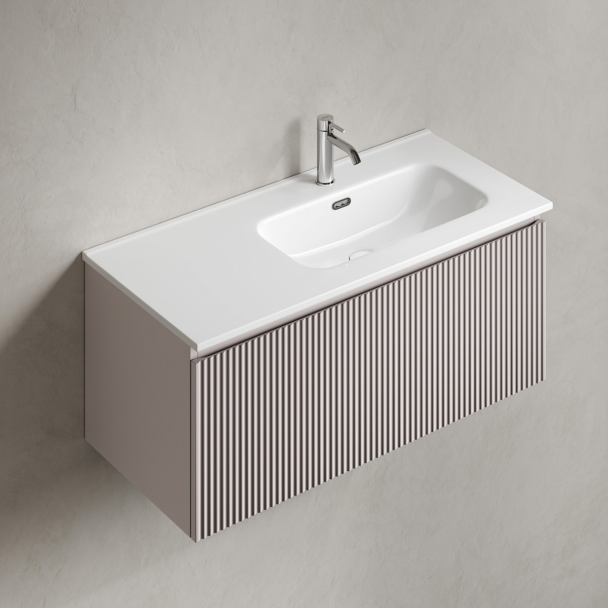 Тумба подвесная SANCOS Snob R 1.0 995х445х406, c одним ящиком оснащенным доводчиками скрытого монтажа с системой Soft close (плавного закрывания), Doha Soft , арт.SNR1.0100RSM
