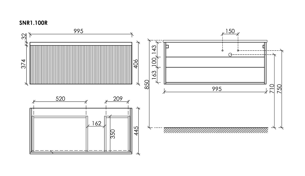 Тумба подвесная SANCOS Snob R 1.0 995х445х406, c одним ящиком оснащенным доводчиками скрытого монтажа с системой Soft close (плавного закрывания), Bianco , арт.SNR1.0100RW