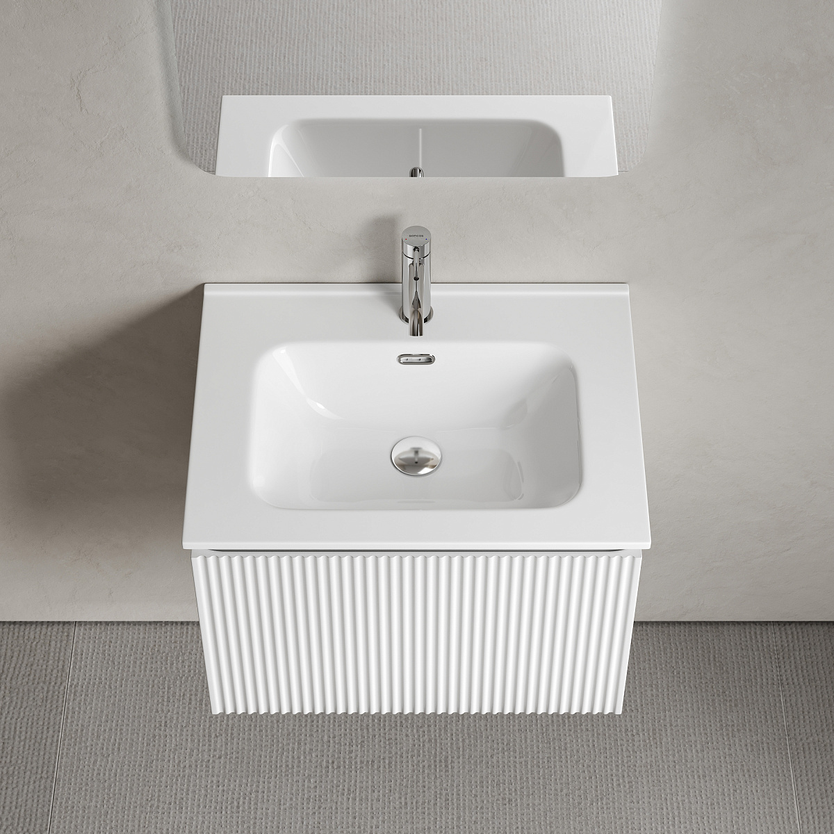 Тумба подвесная SANCOS Snob R 1.0 590х445х406, c одним ящиком оснащенным доводчиками скрытого монтажа с системой Soft close (плавного закрывания), Bianco , арт. SNR1.060W