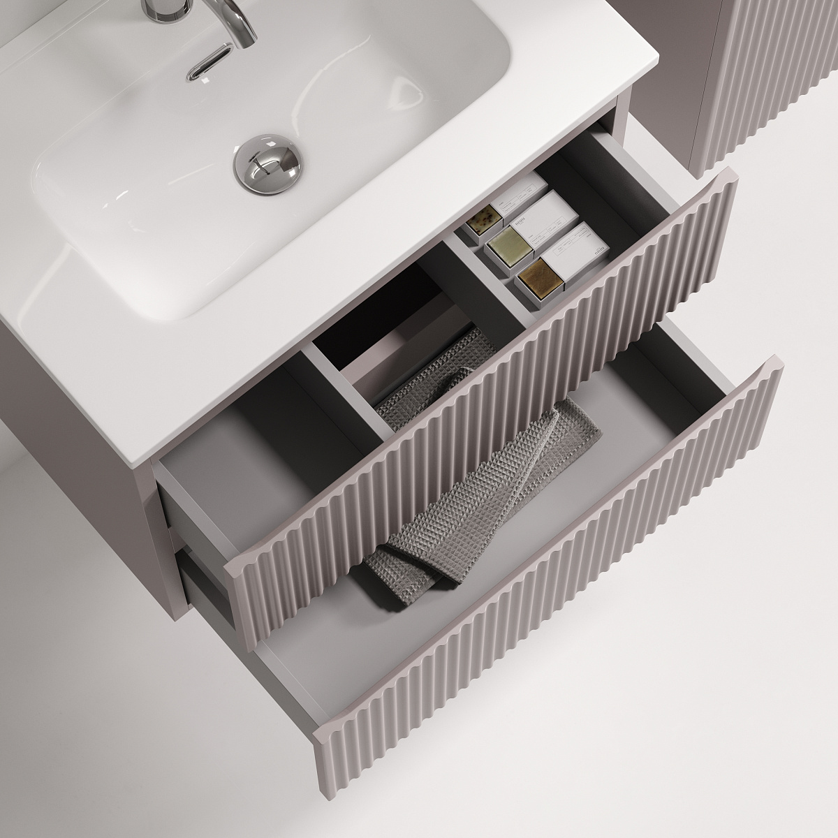 Тумба подвесная SANCOS Snob R 590х390х500, c двумя ящиками оснащенными доводчиками скрытого монтажа с системой Soft close (плавного закрывания) , Doha Soft, арт.SNR60/39SM