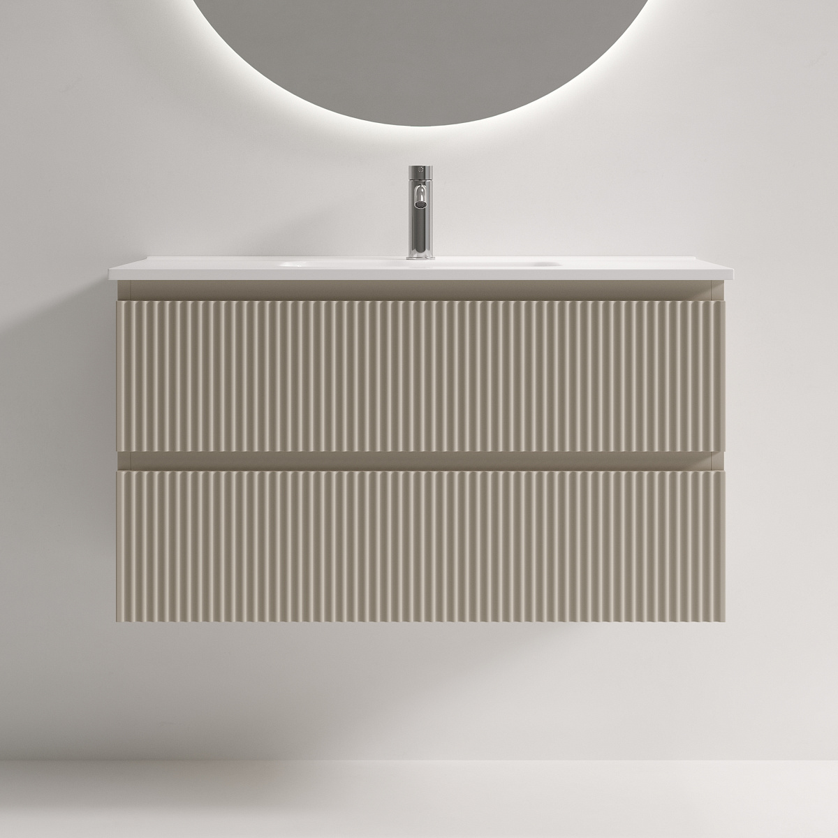 Тумба подвесная SANCOS Snob R 890х390х500, c двумя ящиками оснащенными доводчиками скрытого монтажа с системой Soft close (плавного закрывания), Beige Soft , арт.SNR90/39CE