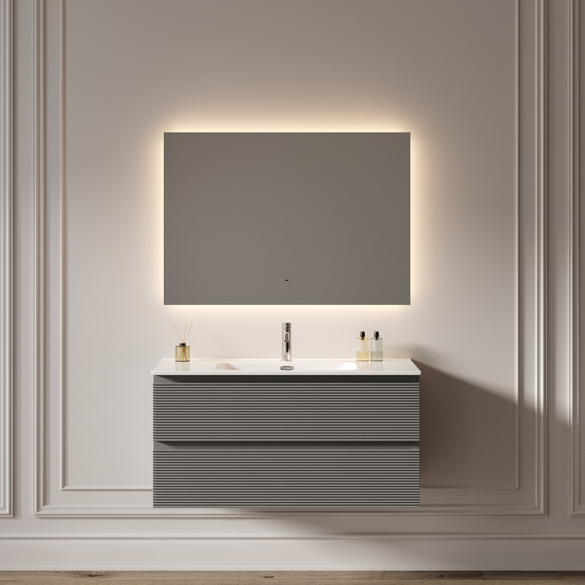 Зеркало для ванной комнаты SANCOS Square 2.0 1000х700 led подсветка 2700K/4000K/5000K, выключатель на взмах, диммируемая регулировка подсветки, арт. SQ2.1000