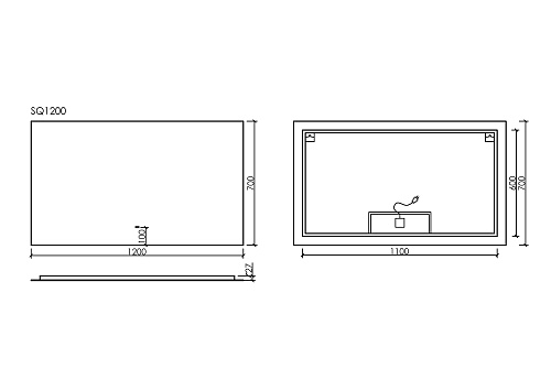 Зеркало для ванной комнаты SANCOS Square 2.0 1200х700 led подсветка 2700K/4000K/5000K, выключатель на взмах, диммируемая регулировка подсветки, арт. SQ2.1200