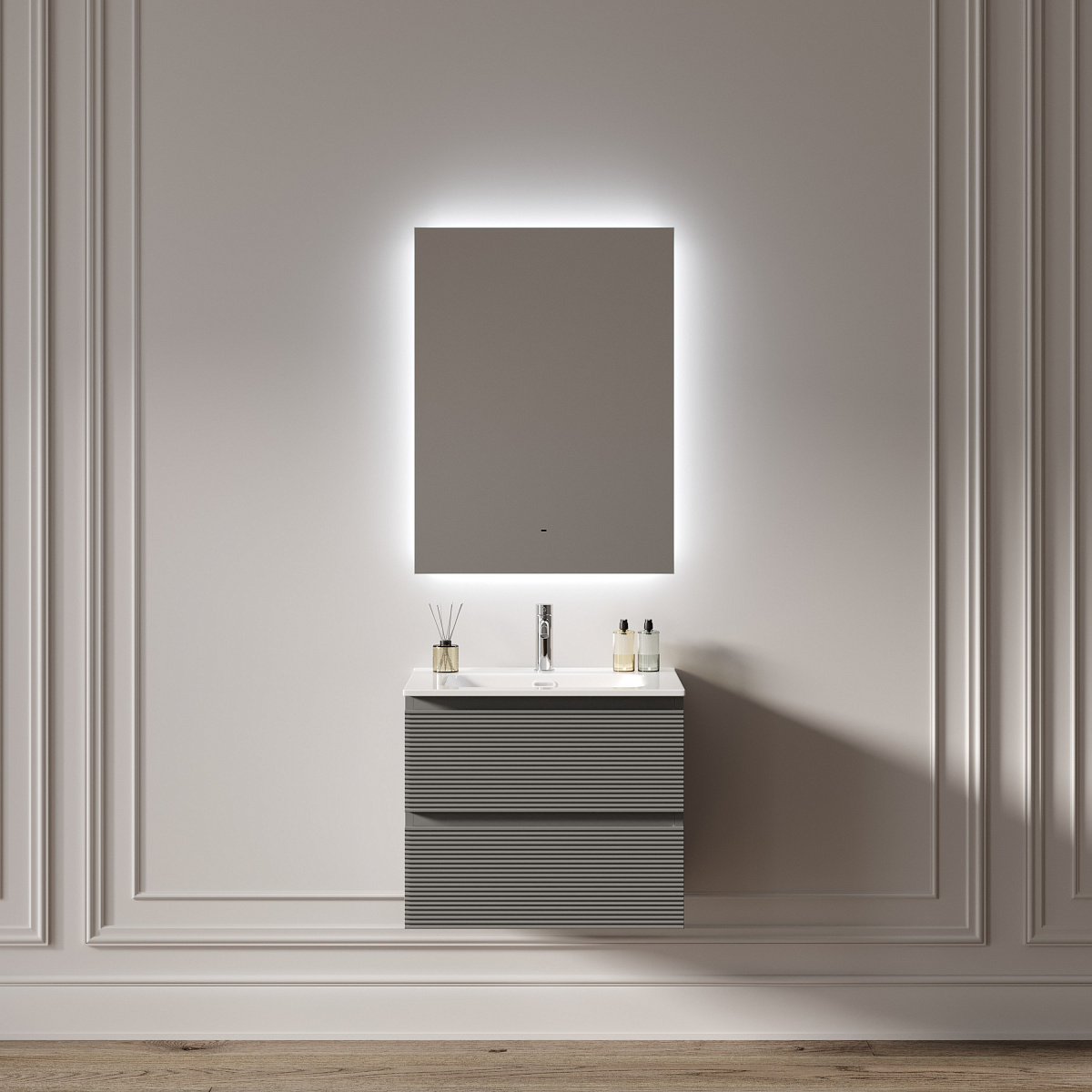 Зеркало для ванной комнаты SANCOS Square 2.0 600х800 LED подсветка 2700K/4000K/5000K, выключатель на взмах, диммируемая регулировка подсветки, арт. SQ2.600