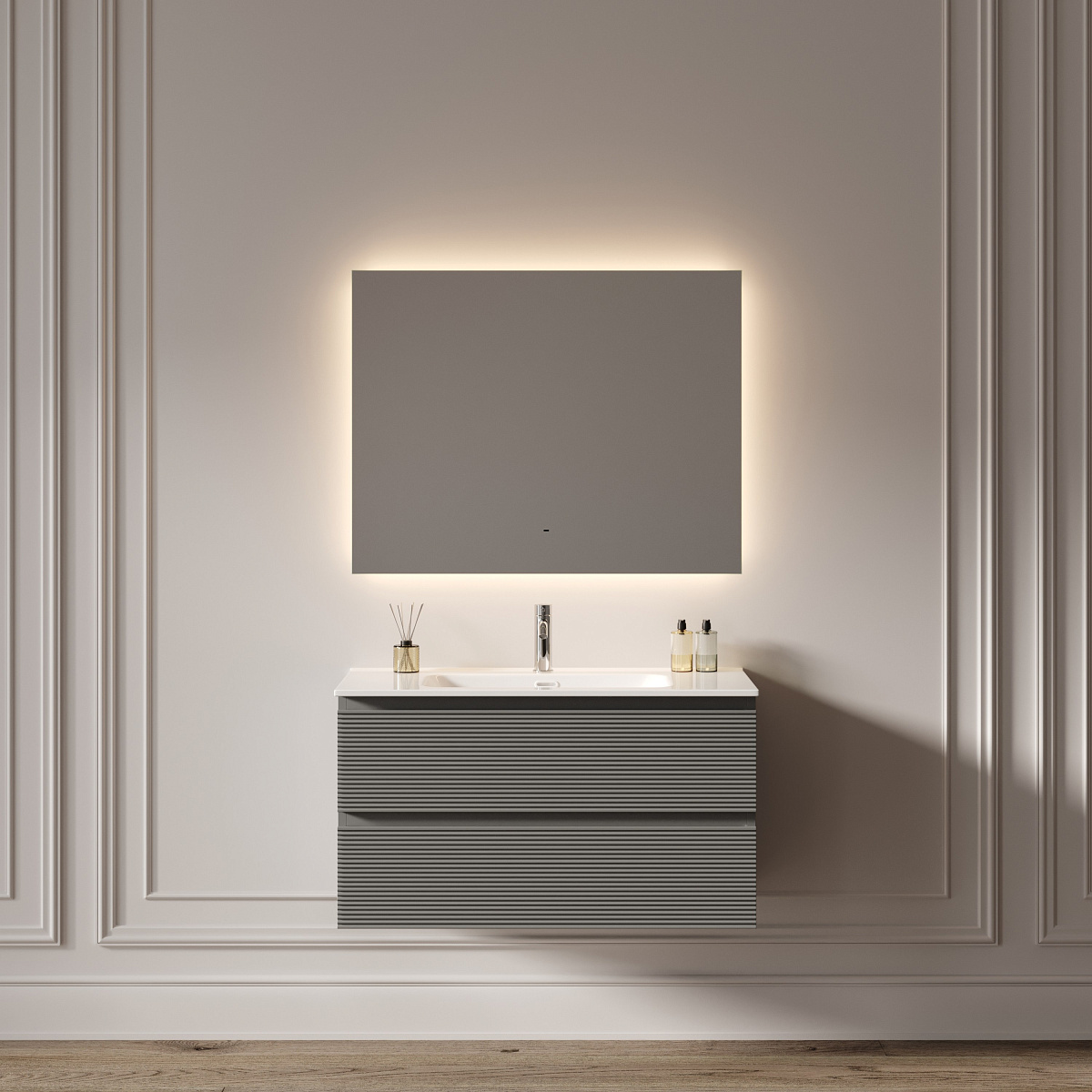 Зеркало для ванной комнаты SANCOS Square 2.0 900х700 led подсветка 2700K/4000K/5000K, выключатель на взмах, диммируемая регулировка подсветки, арт. SQ2.900