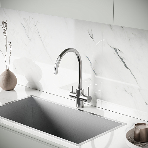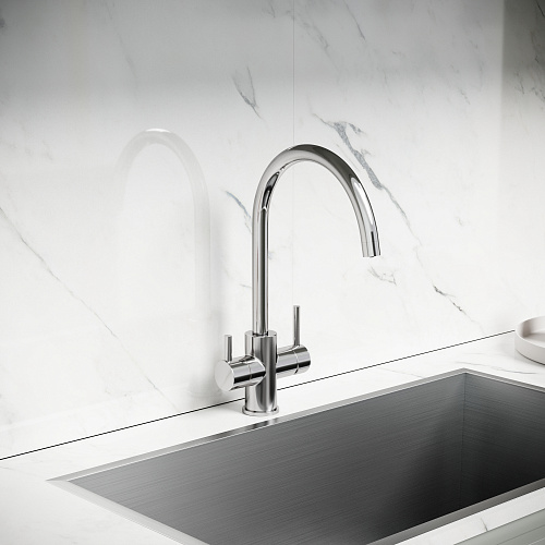 Поворотный металлический излив- возможность поворота на 360 ° Съемный аэратор для проведения очистки Керамический картридж SEDAL - плавная регулировка температуры и потока Отдельный кран для управления фильтрованной водой Излив для фильтрованной воды интегрирован в основной излив Стойкое покрытие методом элетроплейтинга