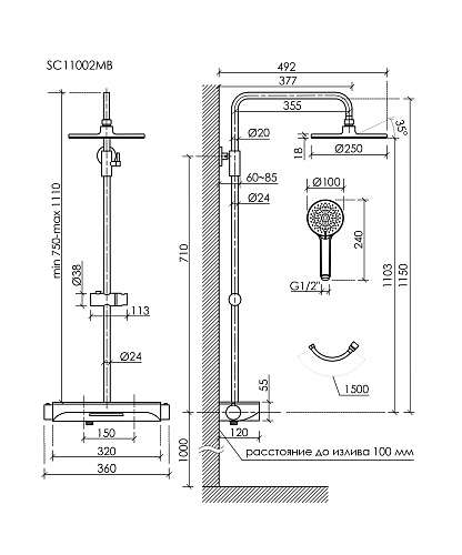 - Верхний душ