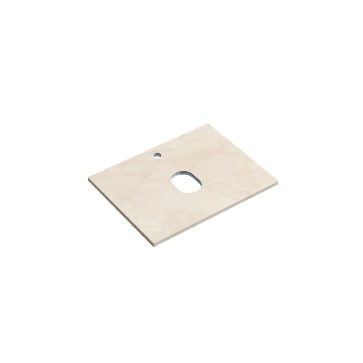 Столешница с фактурой мрамора - идеальное решение для любого интерьера . Столешница выполнена из натурального керамогранита по двухслойной технологии. Верхний слой из цельного листа керамогранита обеспечивает защиту от воды и стойкость даже к самым агрессивным условиям эксплуатации. Благодаря чему, столешница имеет высокие прочностые и изностойкие характеристики. Нижний слой состоит из усиленного полистирола, благодаря этому столешница имеет механическую прочность и повышенную звукоизоляцию. Края столешницы проходят дополнительную обработку для создания идеальной эстетики и безопасности использования. Столешница с просверленным отверстием под смеситель. Рекомендуемая максимальная глубина накладной раковины при установке на столешницу - 360 мм