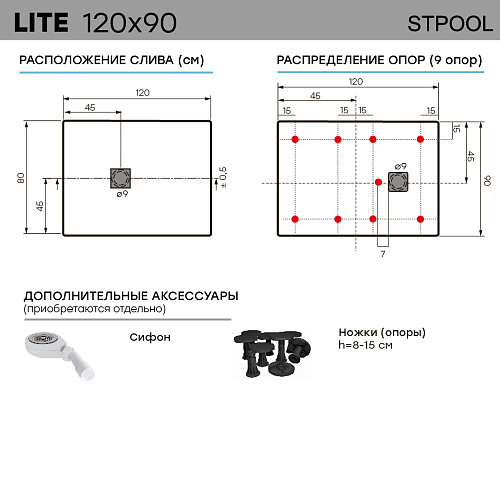 Душевой поддон Lite изготовлен из композитного материала и представляет собой смесь полиэфирной смолы, стекловолокна, наполнителя и верхнего гелевого слоя SUNILUX. Покрытие SUNILUX противоскользящее, термостойкое, стойкое к окрашиванию и УФ-излучению. Душевые поддоны производятся на современном европейском оборудовании для европейского рынка. Контроль качества осуществляется на всех этапах производства. Продукция производится и тестируется в соответствии с европейскими стандартами CE и EN: EN14516, EN 14527, IAPMO Z124-2017. Нескользящая поверхность Antislip R12 Поверхность с имитацией сланца Прочный Стойкий к перепадам температур Стойкий к воздействию химических веществ Устойчивый к загрязнениям Не меняет цвет от времени Экологически нейтральный материал Теплый на ощупь, приятный тактильный эффект Хорошее шумопоглощение (в отличие от стали и акрила) Легко моется с использованием бытовых моющих средств Возможность подрезки под индивидуальный размер Гарантия 3 года *