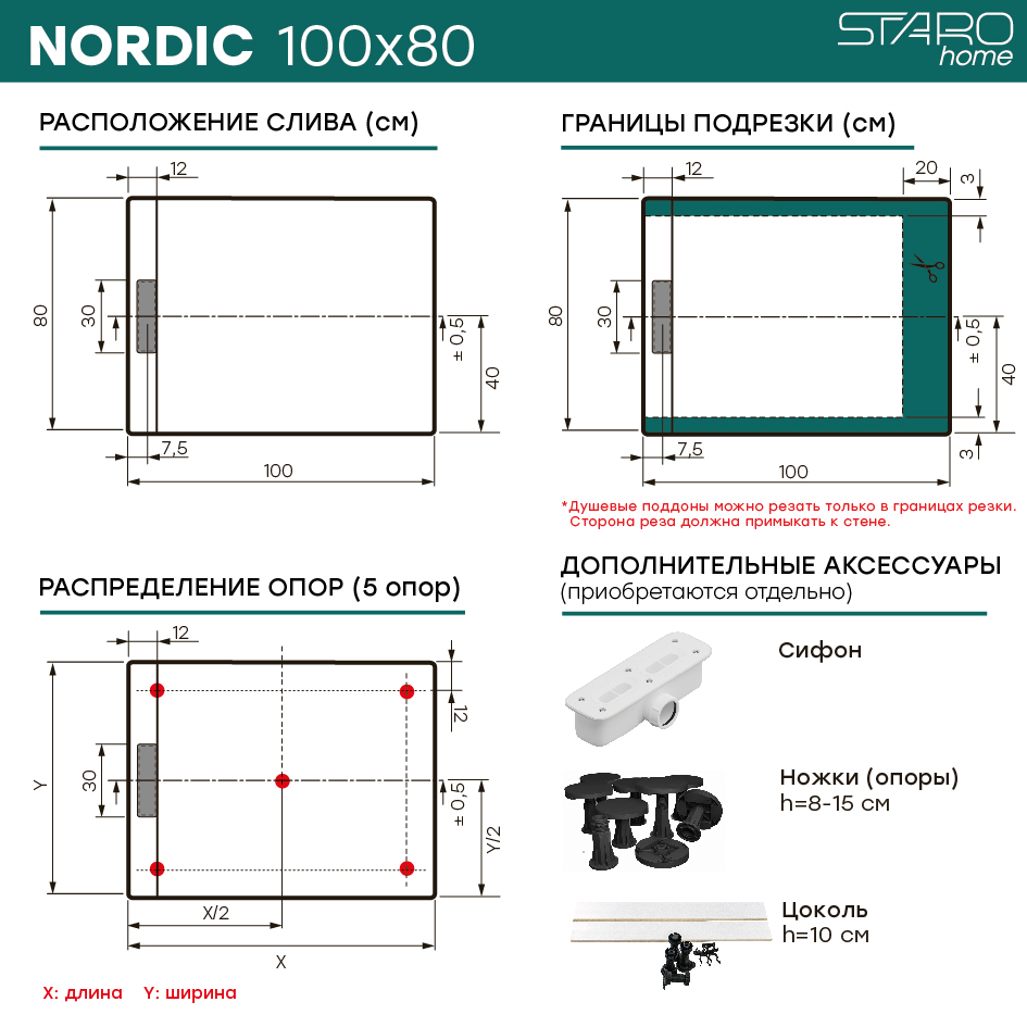 Душевые поддоны NORDIC изготовлены из искусственного мрамора, в состав которого входят натуральные минеральные наполнители и смолы. Сверху материал покрыт гелевым слоем SUNILUX. SUNILUX — это запатентованное высокопрочное гелькоут покрытие, абсолютно непористый материал, защищающий поддон от загрязнений, перепада температур и УФ-излучения. Душевые поддоны NORDIC имеют текстурированную поверхность с эффектом грифельной доски. Прямоугольный слив каждого поддона выполнен из искусственного мрамора в цвет поддона. Душевые поддоны NORDIC– это идеальный инструмент для дизайнера, они станут украшением любой ванной комнаты. - Нескользящая поверхность Antislip - Прочный (выдерживает вес свыше 300 кг) - Высокая износостойкость - Стойкий к перепадам температур - Стойкий к воздействию химических веществ - Устойчивый к загрязнениям - Не меняет цвет от времени - Экологически нейтральный материал - Теплый на ощупь, приятный тактильный эффект - Хорошее шумопоглощение (в отличие от стали и акрила) - Легко моется с использованием бытовых моющих средств - Возможность подрезки под индивидуальный размер - Гарантия 3 года
