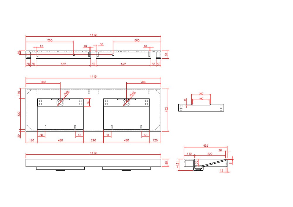 Столешница моноблок 141х45х8 Armadi Art FLAT NERO MARQUINA 859-140-NM