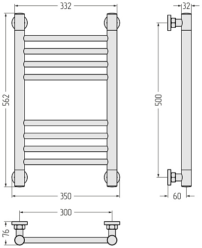 Сунержа 00-0220-5030 Богема+ Полотенцесушитель водяной прямая 500х300 мм, без покрытия