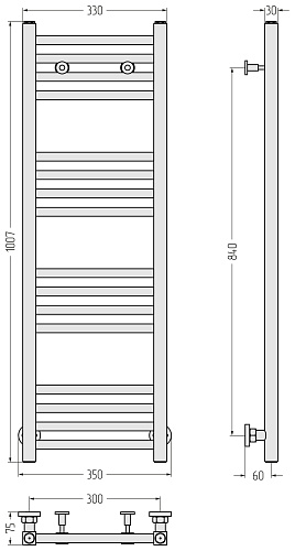 Сунержа 020-0250-1030 Модус Полотенцесушитель водяной 1000х300 мм, шампань