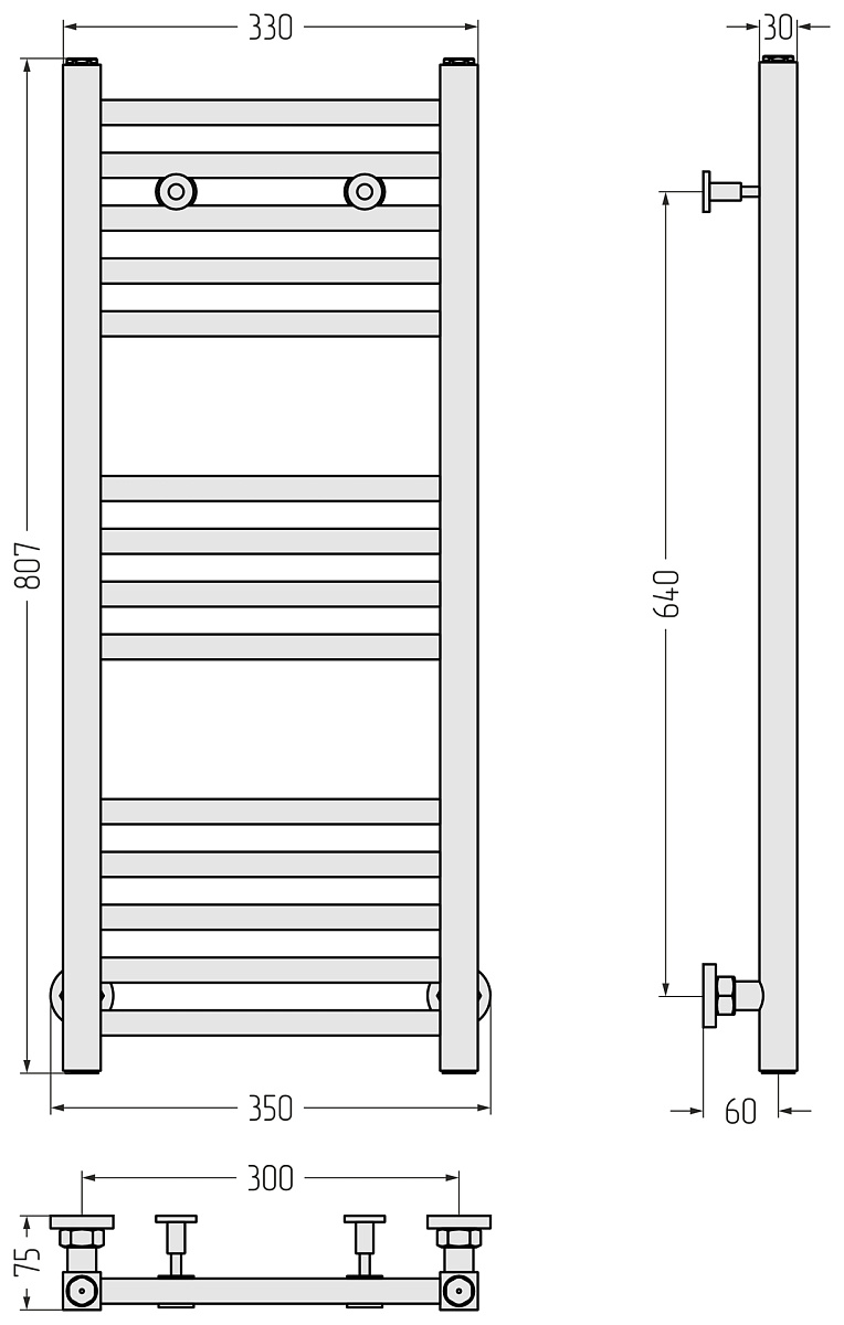 Сунержа 020-0250-8030 Модус Полотенцесушитель водяной 800х300 мм, шампань