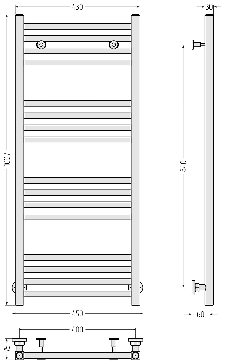 Сунержа 051-0250-1040 Модус Полотенцесушитель водяной 1000х400 мм, состаренная латунь