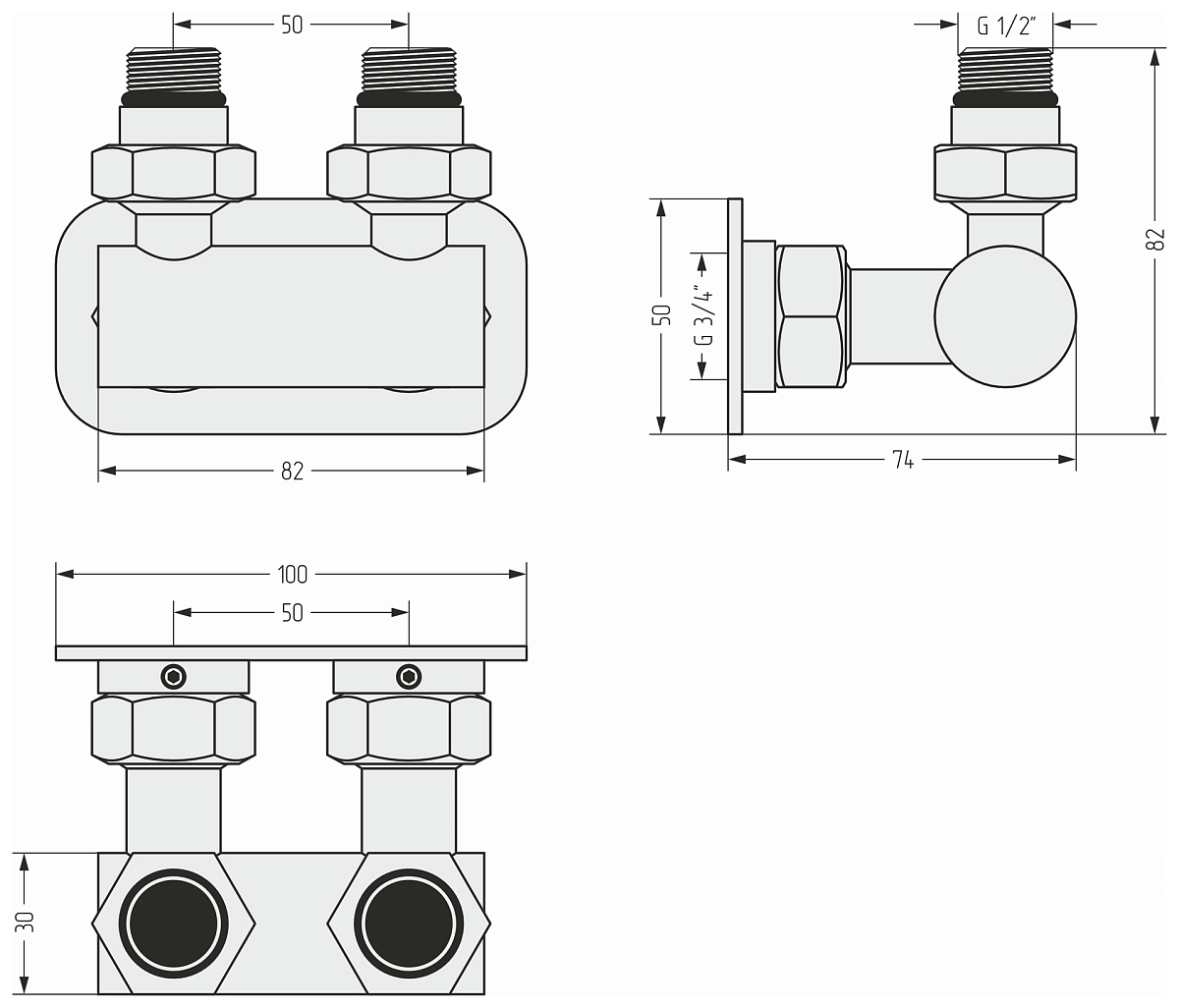Присоединительный размер: 2 х НР G 1/2" / 2 х НГ G 3/4".
