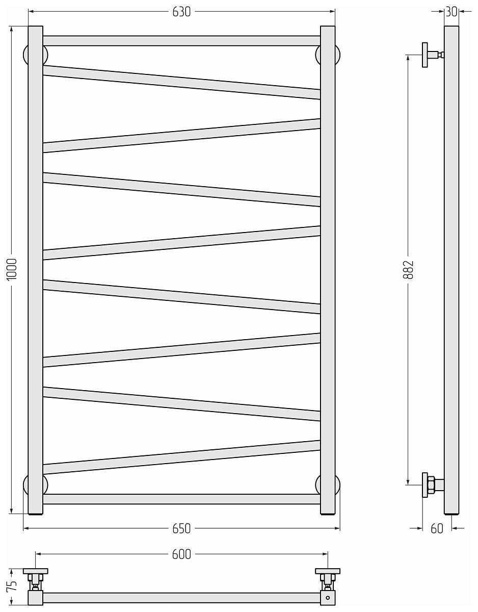 Сунержа 30-0253-1060 Сирокко Полотенцесушитель водяной 1000х600 мм, матовый белый