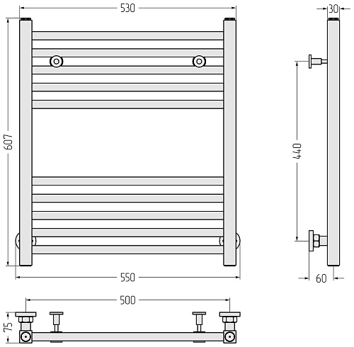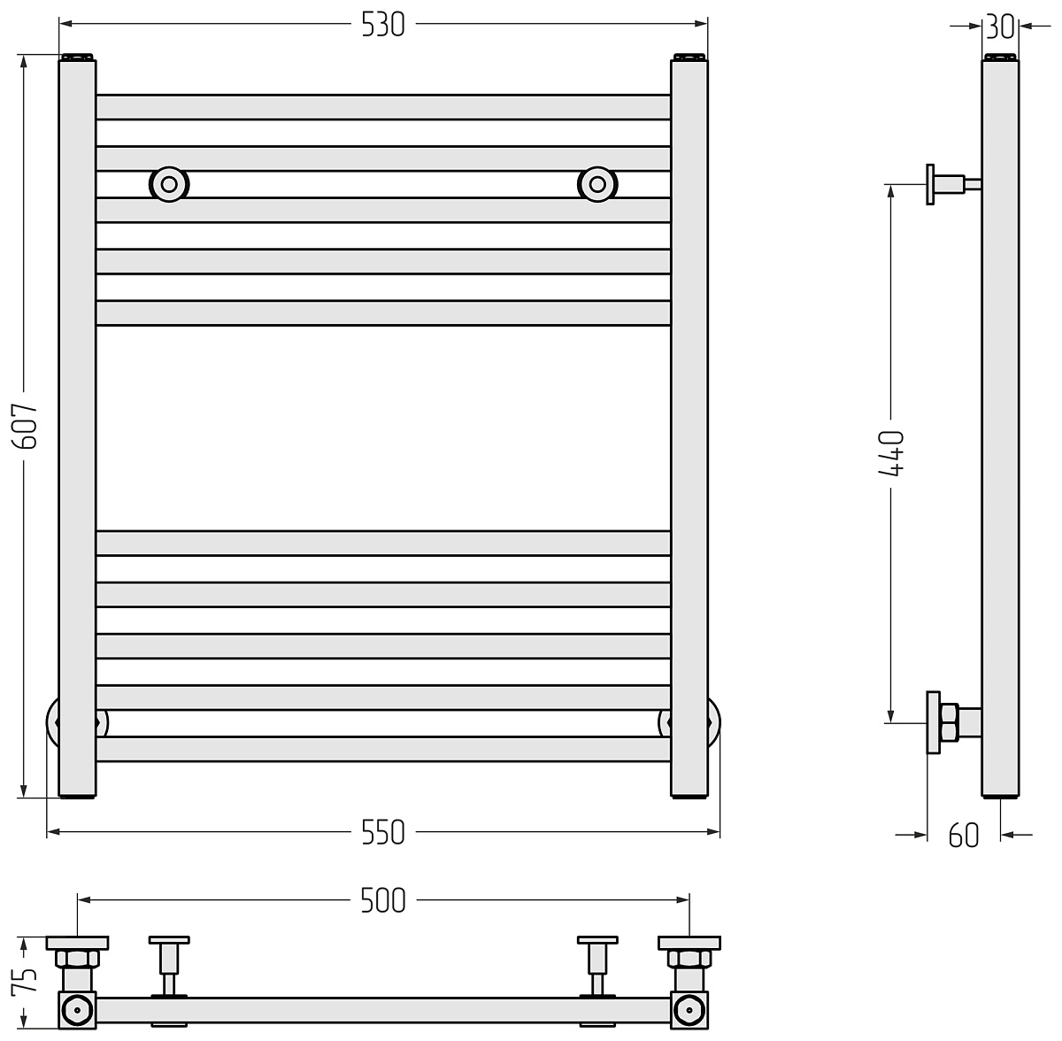 Сунержа 31-0250-6050 Модус Полотенцесушитель водяной 600х500 мм, матовый черный