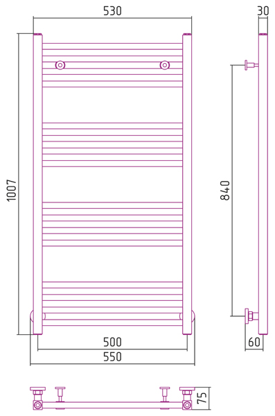 Сунержа ТД Модус 00-0250-1050 Полотенцесушитель водяной