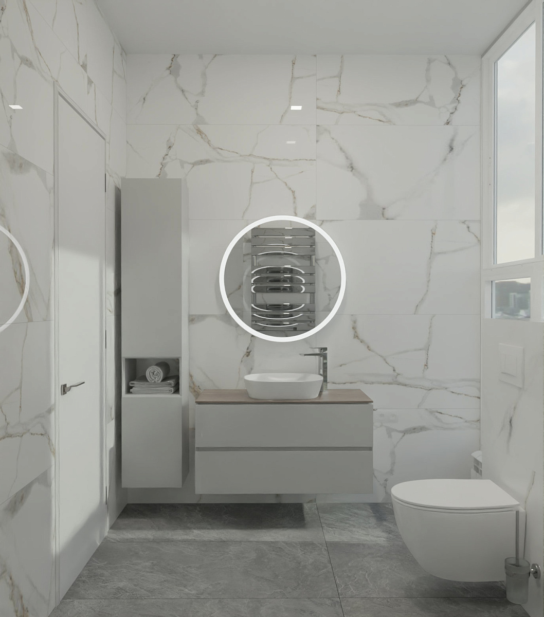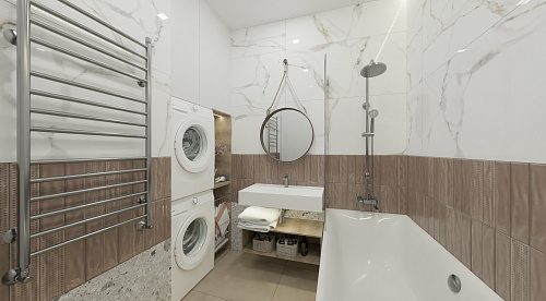 Глазурованный керамогранит под мрамор, размер 60*120 см. в стиле Некоклассика, Современный. Поверхность полированная. Подходит для ванной комнаты, кухни, прихожей, жилых и коммерческих помещений.